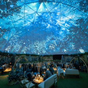Through advanced projection mapping techniques, content is precisely aligned to the dome structure to eliminate distortion and create seamless visual immersion. The result is a powerful illusion that surrounds viewers with vivid imagery, motion, and storytelling that feels tangible and unforgettable.