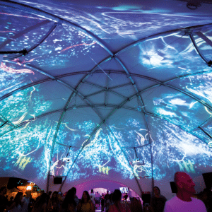 Available in both geodesic and inflatable configurations, our projection dome venues are equipped with state-of-the-art projection systems, high-performance interior projection surfaces, and structurally engineered infrastructure designed to support immersive content delivery. Each projection dome is tailored to the unique goals, scale, and technical requirements of your event, installation, or experience—providing a flexible platform capable of transforming any space into a captivating immersive environment.